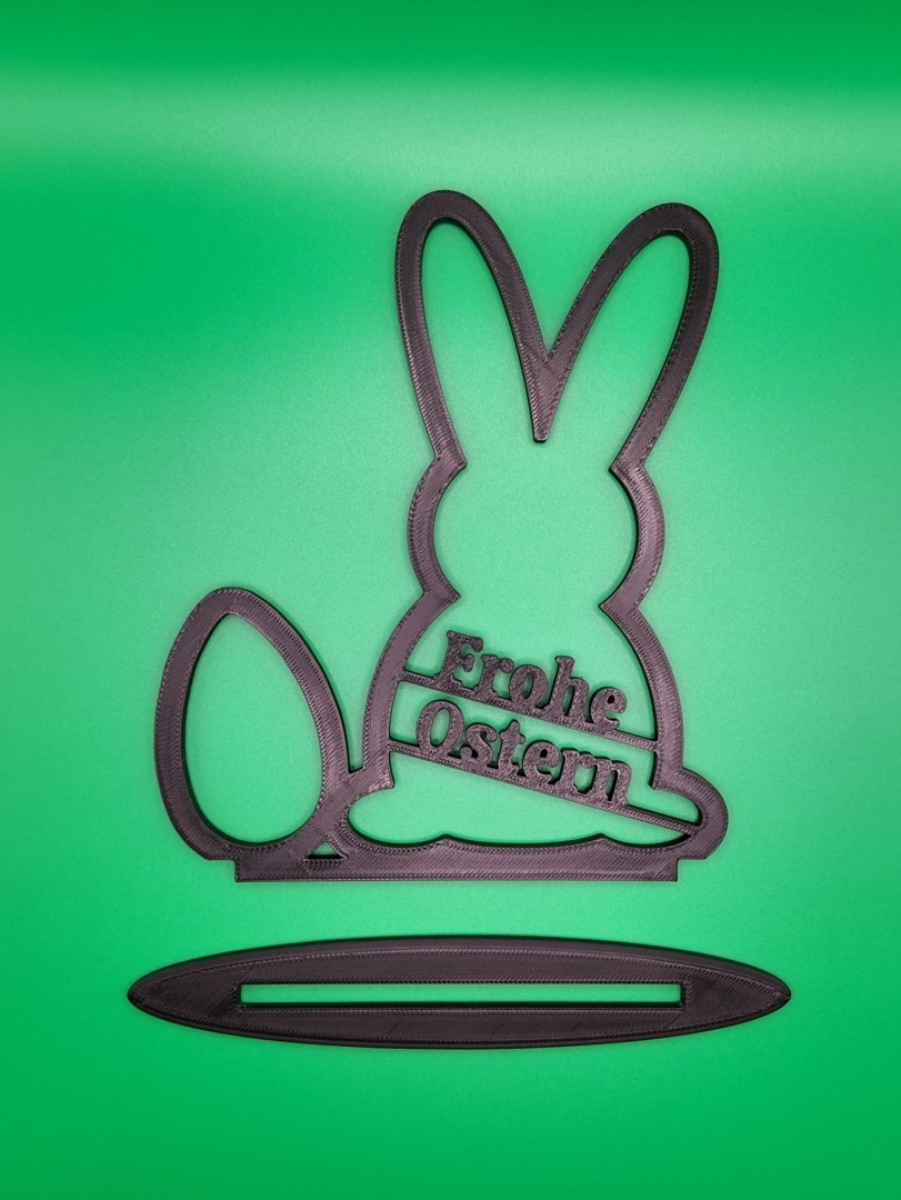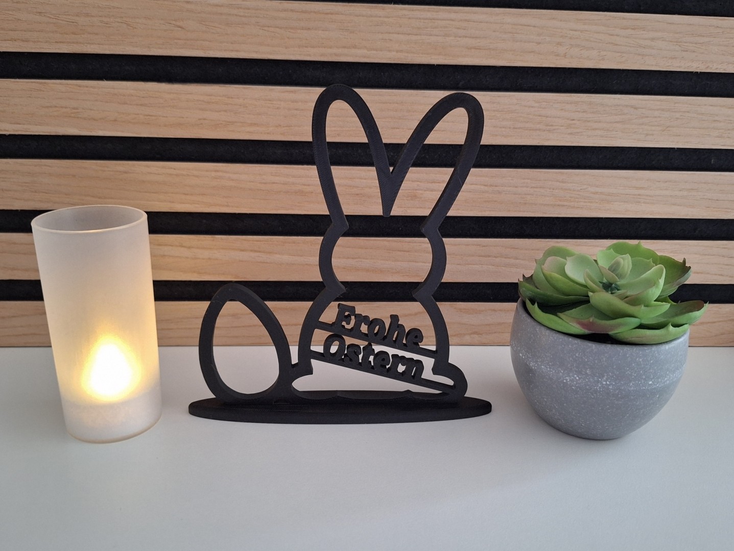 Unser Osterhase mit Ei und Ständer, sowie dem Schriftzug „Frohe Ostern“, verkörpert die festliche Stimmung perfekt. Hergestellt mit moderner 3D-Drucktechnologie und liebevoll gestaltet, ist er das Highlight Ihrer Osterdekoration.